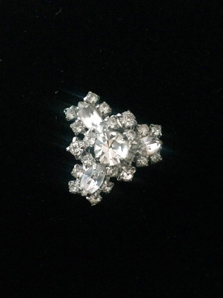 Vintage 60s silver and rhinestone triangular cluster clip on costume earrings. Each has 25 super sparkly stones.