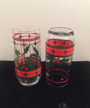 Pair of awesome and super durable holiday cocktail glasses. They feature a faux stained glass pattern and holly/berries. The colors are exceptionally vibrant- no signs of fading at all. Were originally part of a bigger barware set, so would be great as replacements for existing sets or new collectors.