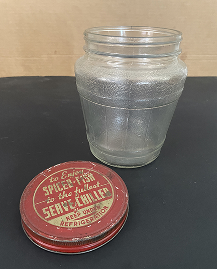 "To enjot spiced fish to the fullest - serve chilled - keep under refrigeration" with red design